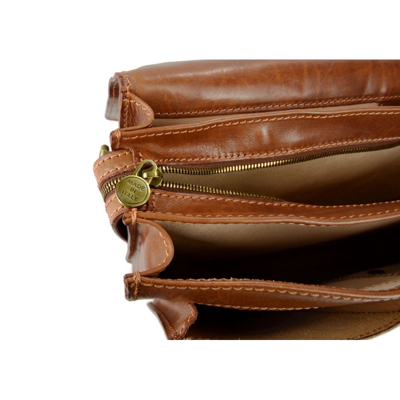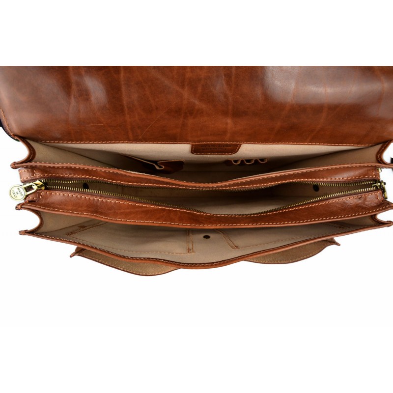 Lining the back of the natural leather, three compartments, two open front pockets, pocket for documents, pocket credit card holder, pen holder, cell phone holder
