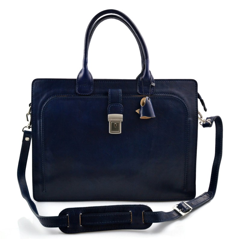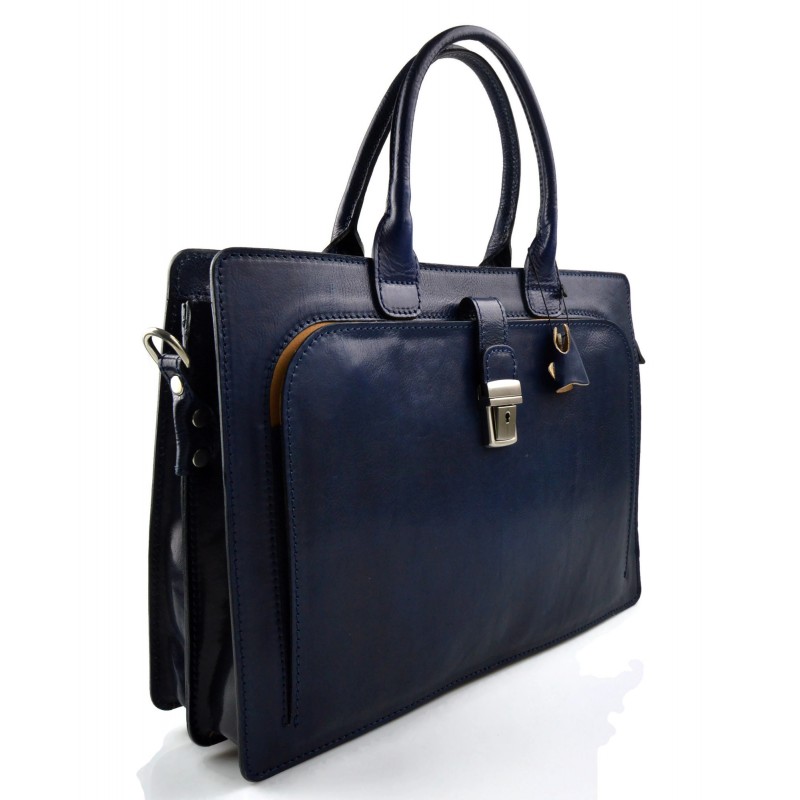 Magnificent briefcase made with top quality genuine leather . This bag is ideal for executive work for short trips. A brass buckle closes the body of the bag, and a removable shoulder strap makes it very practical to wear.