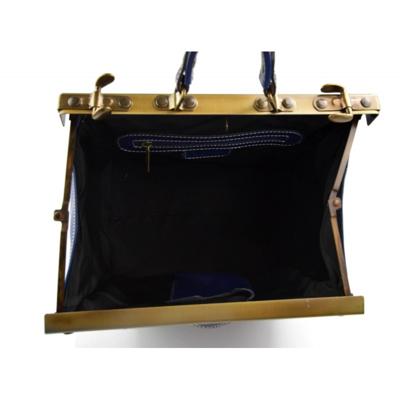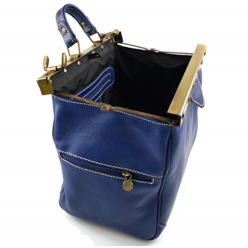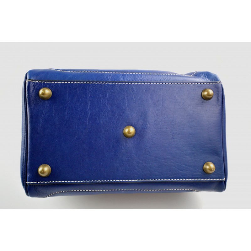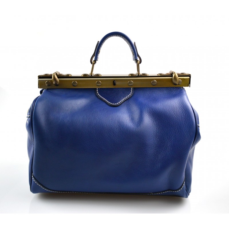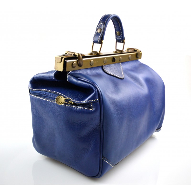 Ladies leather handbag doctor bag handheld shoulder bag made in Italy blue