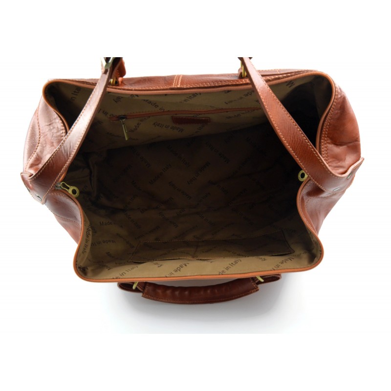 Magnificent bag made of genuine leather, durable and long-lasting. Attention to every detail, it is practical thanks to the compartment with zipper placed at the bottom of the bag. With removable shoulder strap and handles attached with sturdy rings.