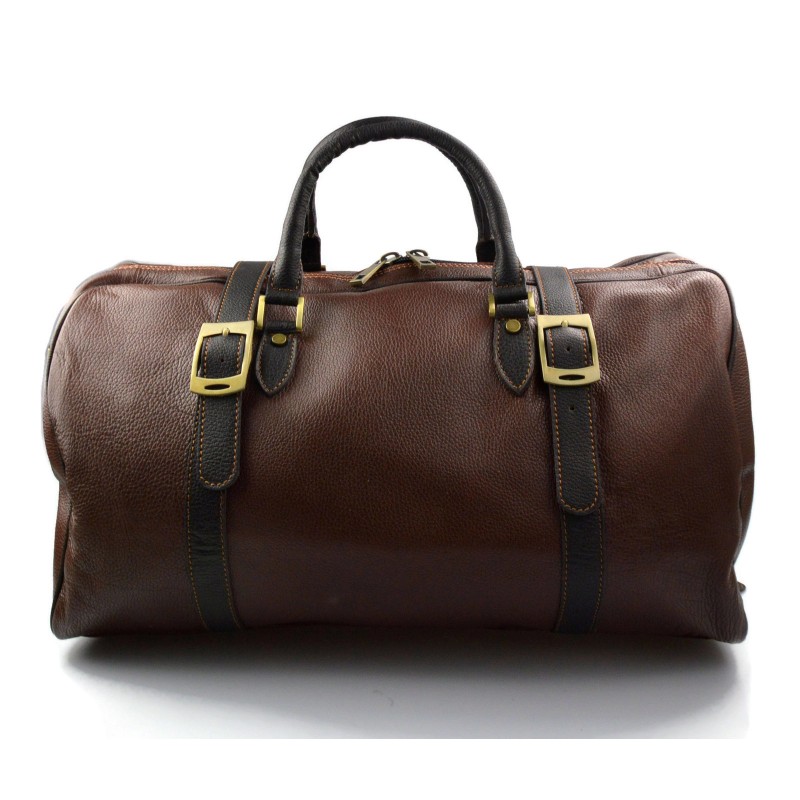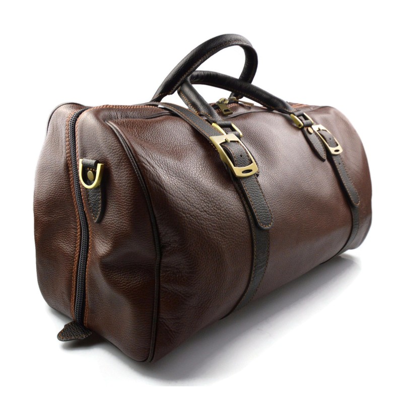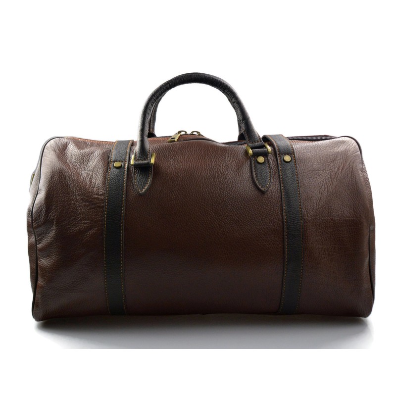 Metropolitan look for this beautiful travel bag. Made with extreme care, genuine leather, taking care of every detail. The bag has two sturdy handles attached to brass rings, and removable shoulder strap.