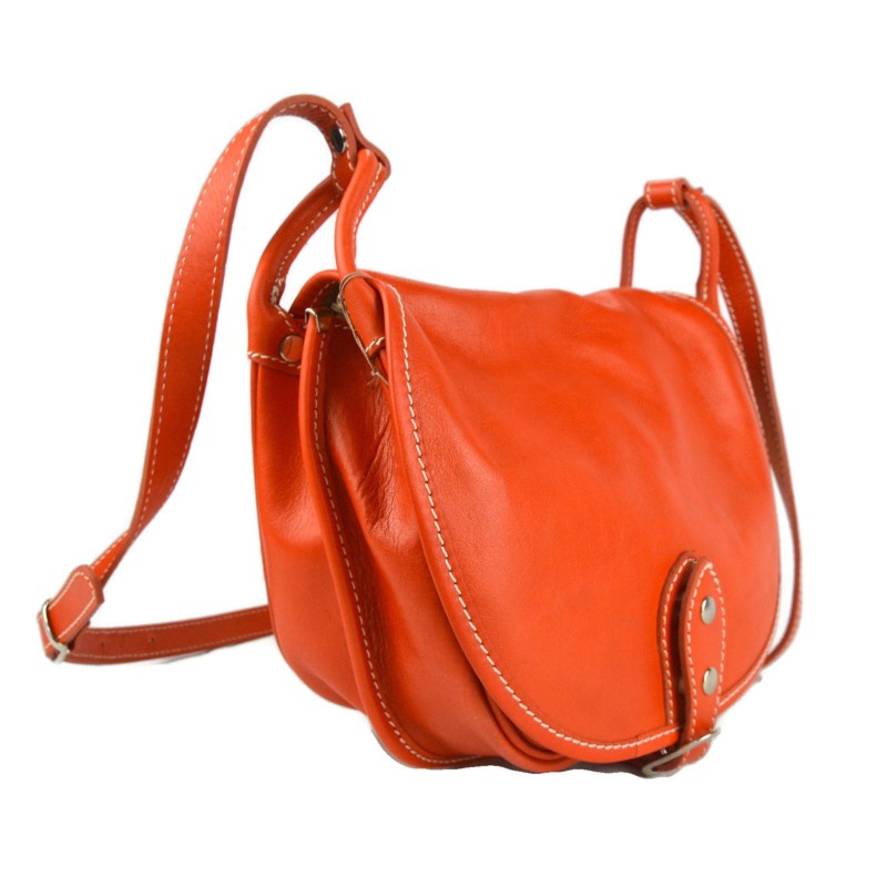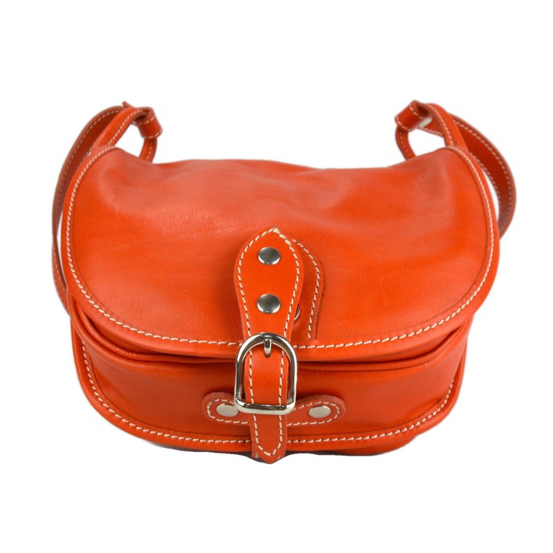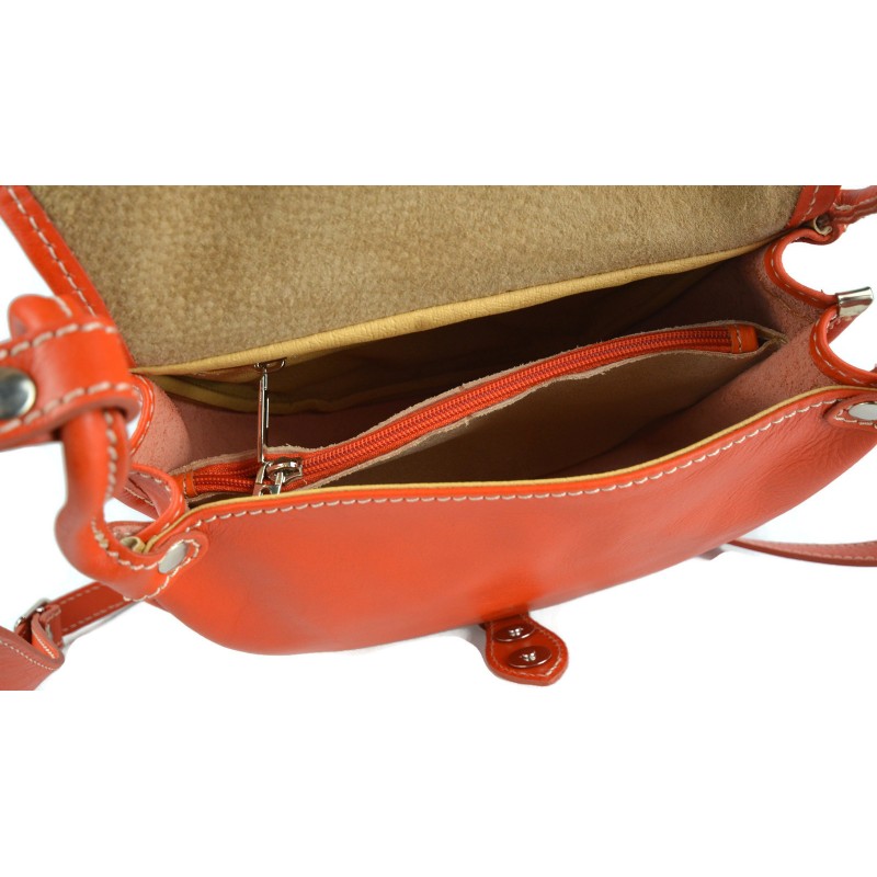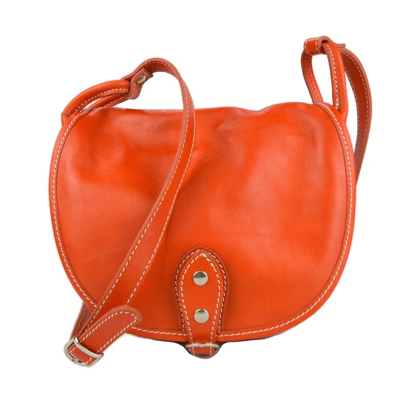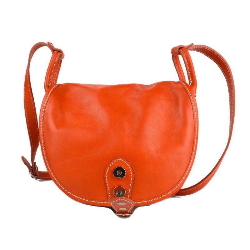 Shoulder bag in genuine italian leather with metal button closing.