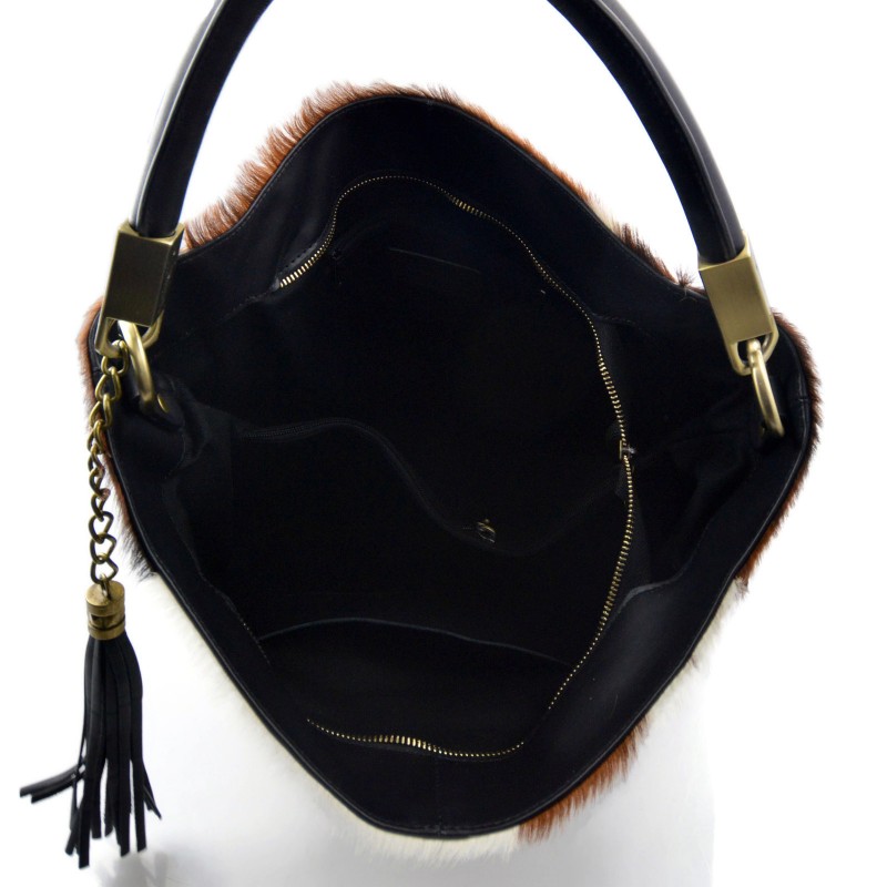 ATTENTION: the brown and white amount of color may differ in coordination with the piece of leather that was cut. Some have more white, some have less. We did not tan the leather, the bag comes with the natural condition of the leather.