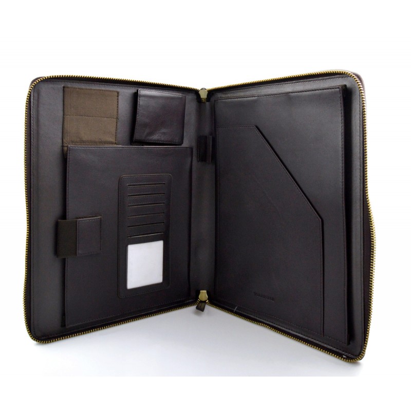 Accessoire indispensable dans la vie de ceux qui travaillent ou étudient, ce dossier est en cuir portefeuille iperaccessoriata, pour répondre aux besoins de chacun. Fermeture éclair, poignée, quatre grands compartiments, anneaux pour des tôles perforées, et diverses poches intérieures: détails matériaux entretenus et d'excellentes, pour un objet qui vous accompagner dans le temps.