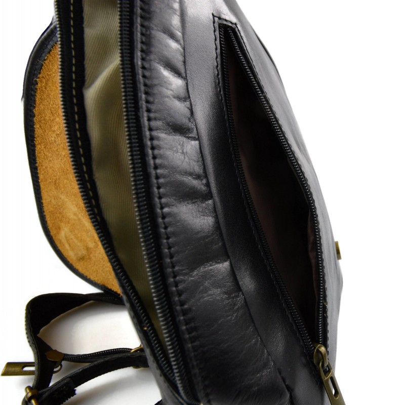 Bandoulière en cuir et réglable, avec la possibilité d'ouvrir le sac à dos