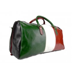 Borsone uomo donna borsa viaggio con manici e tracolla vera pelle bandiera italiana dietro verde
