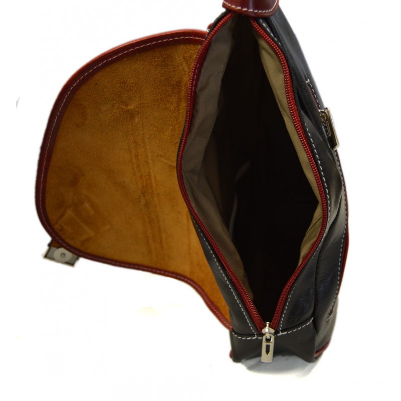 Tracolla in pelle e regolabile, con possibilità di apertura a zaino