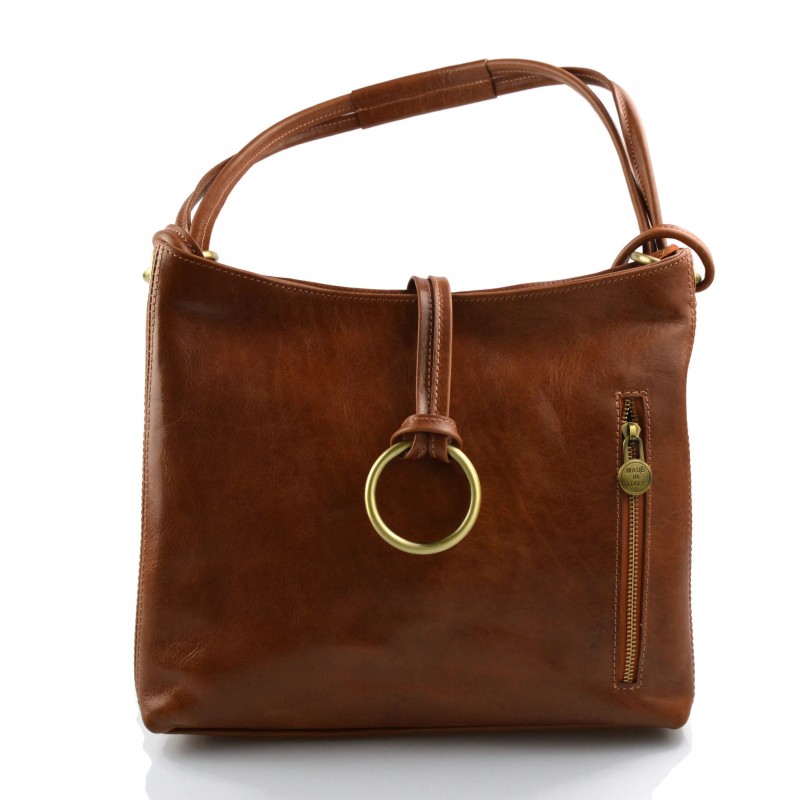Borsa pelle borsello donna a spalla e a tracolla marrone opaco made in Italy vera pelle