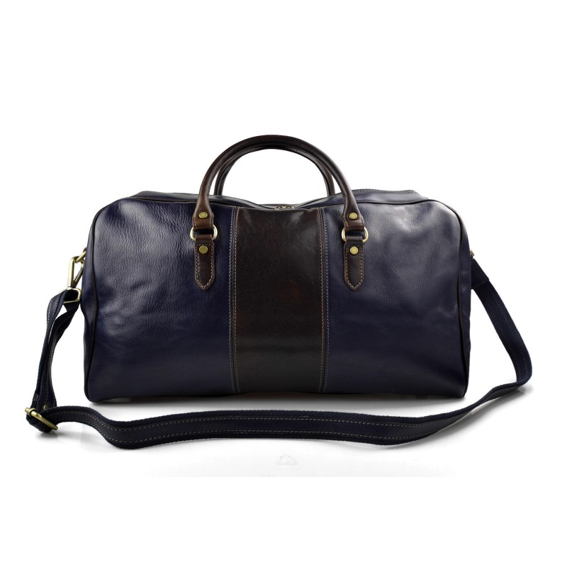 Look metropolitano per questo bellissimo borsone da viaggio. Realizzato con estrema cura, in vera pelle, curando ogni dettaglio. Il borsone è dotato di due robusti manici agganciati ad anelli in ottone, e tracolla removibile.